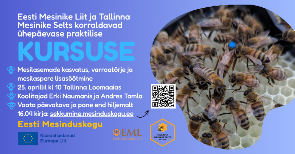 Ühepäevane praktiline kursus Tallinna Mesinike Selts 25.04.2026 kell 10.00 Tallinna Loomaaia mesilas.Koolitajad: Andres Tamla ja Erki Naumanis